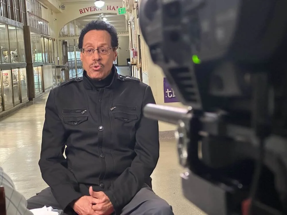 Producer/Director Robert Dean (East, ‘72) and I met on a Dateline shoot many years ago, and I was delighted when he asked me to help him out with this project as the Director of Photography. We were joined by Producer Charlotte Glover, and Associate Producer Niani Scott, with an occasional visit from our delightful Executive Producer Elizabeth Fisher Woodard (East, ‘68.) Dennis Fry and Trevor Nordeen were our sound mixers, and Angela Roelle did hair and makeup. A highly efficient team!
